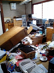 いつもなら仕事場の椅子に座って仕事をしている時間ですが幸い倒れた戸棚の下敷きにならずに済みました。今まで経験したことのない大きな揺れに恐怖心が走りました。この年は肺炎で入院したり、他にも悲しい出来事があるなど、何年間もの出来事がいっぺんに起きたような年でした。