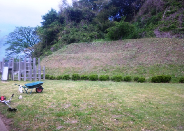 十分な広さの中庭の斜面は子供たちの格好の遊び場になっているとのことで入念に草刈りをしました。
