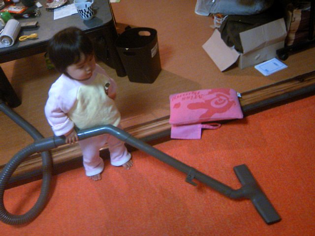 いよいよ今年も残りわずかとなりましたね。皆さんお正月の準備はもうお済みですか?今日は朝から気持ちの良い快晴。年の瀬らしくないようですが、それでも朝市に行ってみるとお正月用品を買い求める人でいっぱいでした。うちも大掃除などして新年を迎えようと思いまして掃除機をかけていたら娘がさせろとせがみまして、掃除機を奪われてしまいました。(>_<)