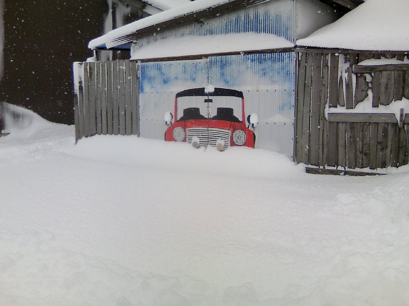 それもそのはず、能都上空-33度の寒気団が居座ったらしく、今朝起きてみると一晩で玄関から出られないほどの雪が積もっていました。玄関表と、裏の車庫の扉前の雪かきで半日かかりました。
