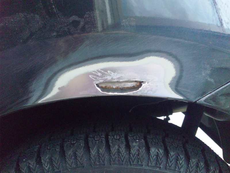 錆止め剤を添付しこの穴はパテ剤で埋めることにします。もはや完全に板金屋さん状態です。