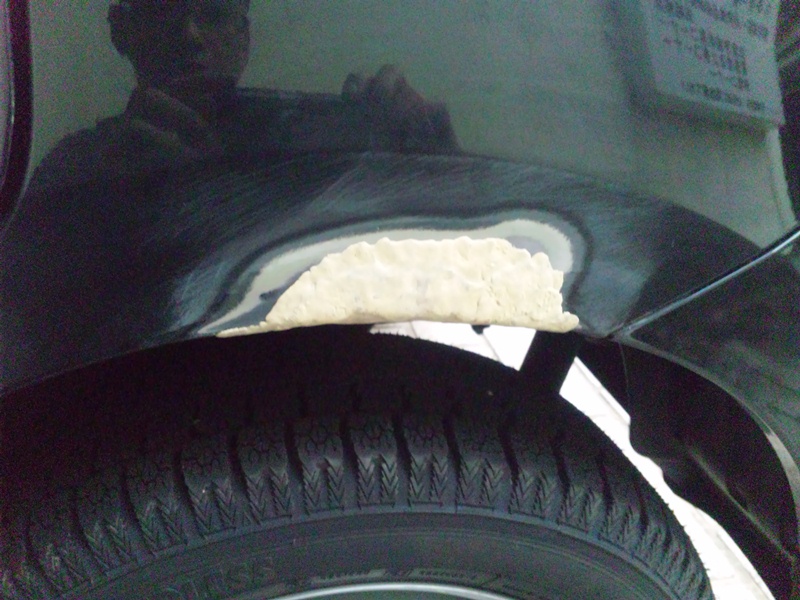 後部、左フェンダー、何故かワゴンRの場合ここからやられるケースが多いみたいです。