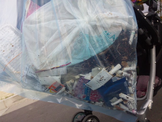 それで、今日は、ゴミ拾いをしながら散歩することにしました。