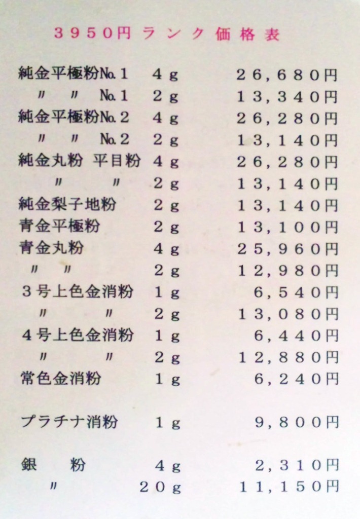 この店のご夫婦とは同級生なのですが、ここ最近の金粉の高騰には頭を悩ませているようです。